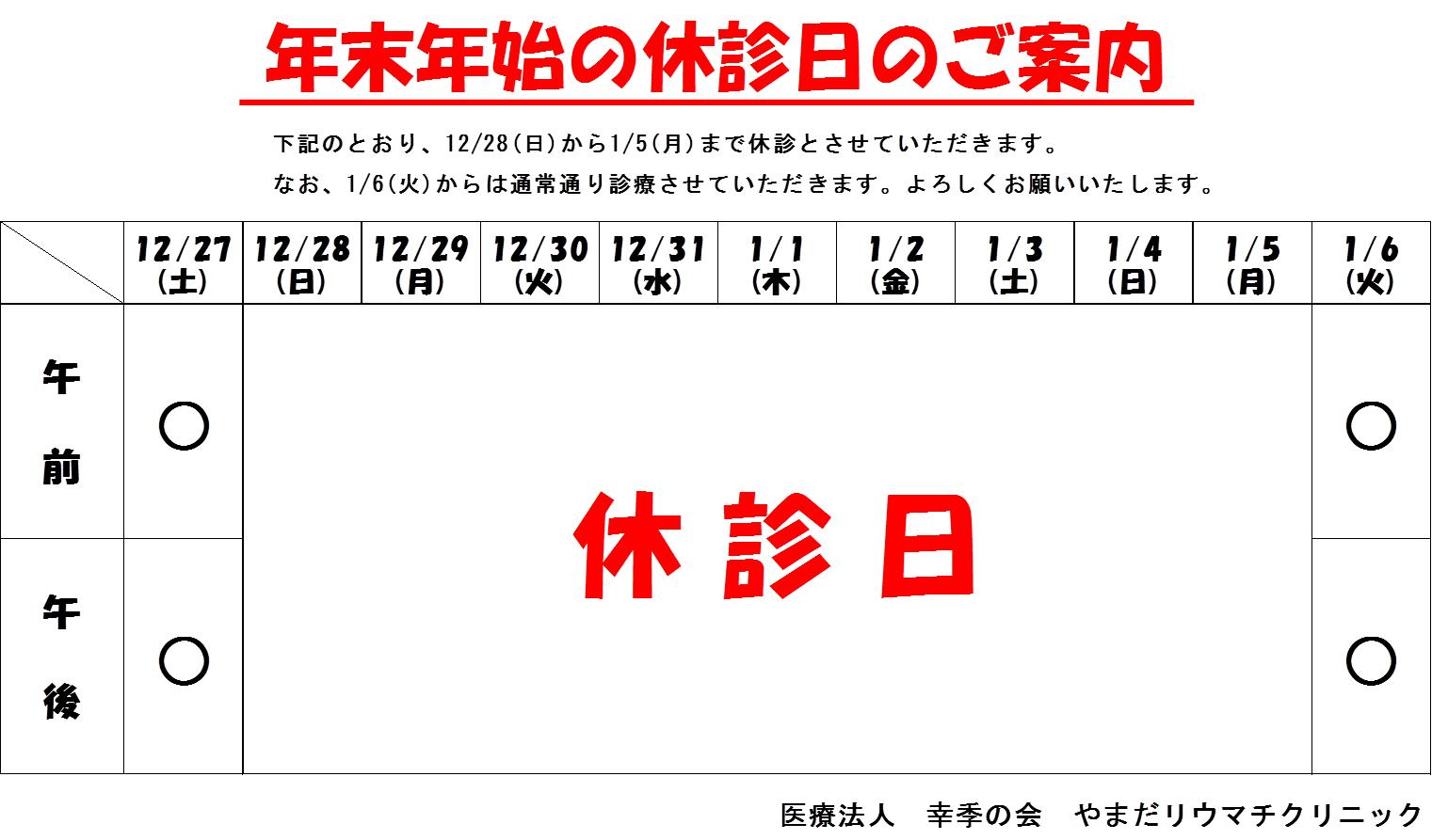年末年始の休診日のご案内